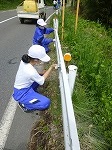 昭和57年の開始から39年目を迎えた本校の伝統行事ガードレール磨きが25日に行われました。昨年度は新型コロナ感染症対策で秋に延期をして実施しましたが、今年度は例年通り1学期に行うことができました。自分たちの住む八坂を、より美しく安全で、そしてより安心して暮らせる地域にするために、全員が真剣なまなざしで黙々と作業に取り組んでいました。また今回は小学校の5・6年生も参加し、小中間の交流もより深まりました。この活動を行うにあたり、地域の皆様、長野県大町建設事務所や大町市八坂支所、シルバー人材センター、やまびこバスなど多くの方々のお力添えをいただきました。本当にありがとうございました。